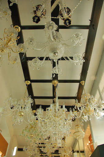 在導遊帶去的特約免稅店內陳列了好多水晶燈,不過家裏是沒地方裝的啦,汪小v的服裝和動作搭配那個背景好像在唱歌劇啊