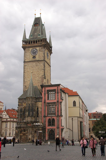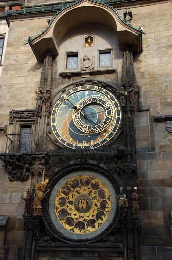 布拉格廣場有名的天文鐘,整點時那個骷髏會開始敲鐘,耶穌的12門徒就會依序從上面的窗戶列隊出現。