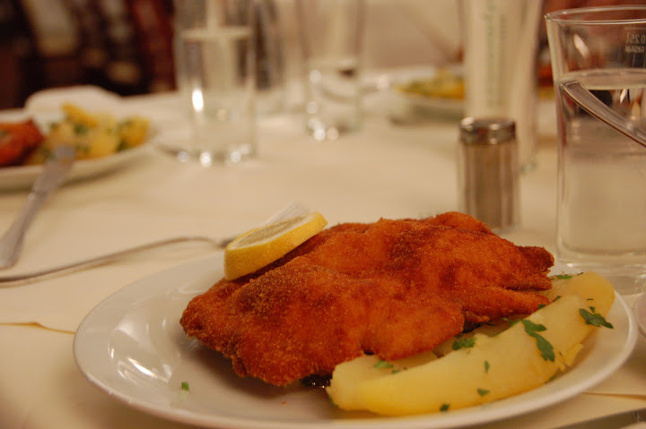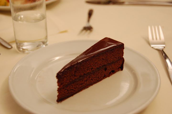 晚餐聽說是有名的奧地利炸豬排,不過我和小艾咪一致認為難吃,又乾又沒味道,至於甜點的蛋榚,我想應該甜到能殺死螞蟻,連汪小v都不吃