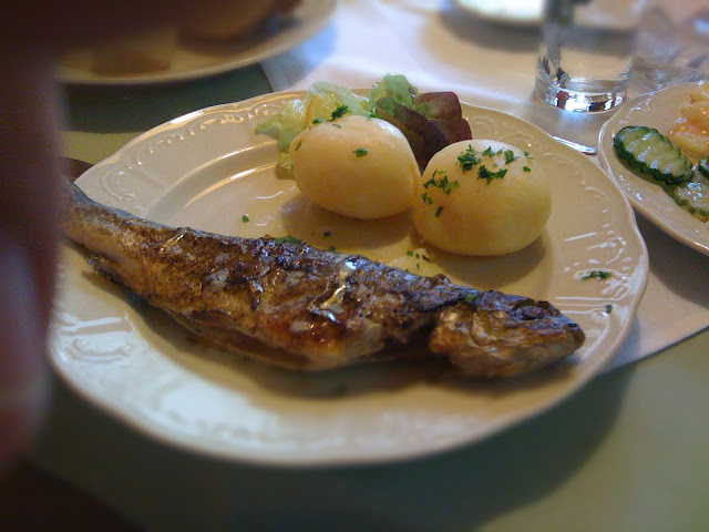 今天中午就是在哈爾施達特吃的所謂的奧地利鱒魚餐,因為外面的風景太美,反而這個所謂的美味鱒魚餐倒不是讓我們很驚喜(我想應該不用說的太明白吧,哈)
