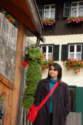 哈爾施達特就是有尖塔的那個湖,絕美的湖光山色和水中的倒影,大家明信片應該常見到吧,美景讓小艾咪也很放鬆,為什麼呢? 因為照這張照片的同時,相機,包包,還有汪小v全部都在我身上,瞧小艾咪的笑容多麼輕鬆啊....