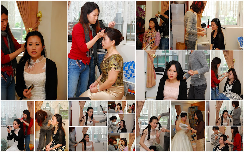 凌晨四點,當大家還在夢鄉,這一家子己經起床,新秘也來到位在汐止的女方家,因為女方除了新娘子,還有媽媽,三個妹妹和兩個伴娘共七個人要 Style ,除了化妝外還有一堆事情要忙,至於新郎這邊呢? 應該跟大家一樣,還在睡夢中吧。