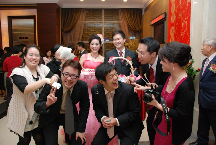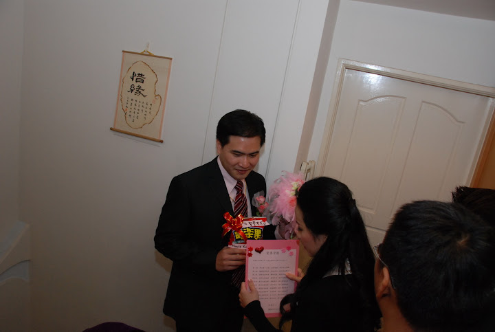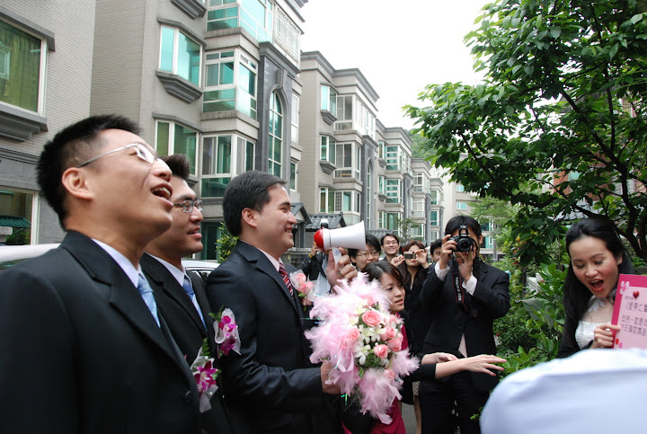 終於,新郎來了,新郎非常有兵來將擋,水來土淹的精神,雖然有重重關卡,但是完全沒在怕的,直接掛外掛放出了大絕,遲到半小時。(這邊會不會有很多人看不懂)