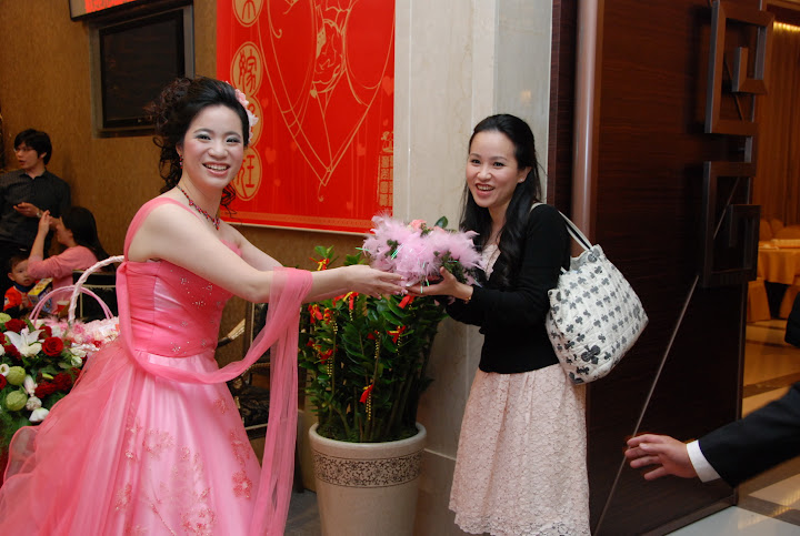 捧花交接下一棒,要幸福喔....(關卡的大魔王今天辛苦一天的代價)